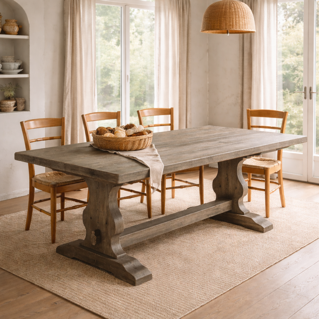 Una mesa que ancla el espacio. Clásica, honesta, atemporal.
