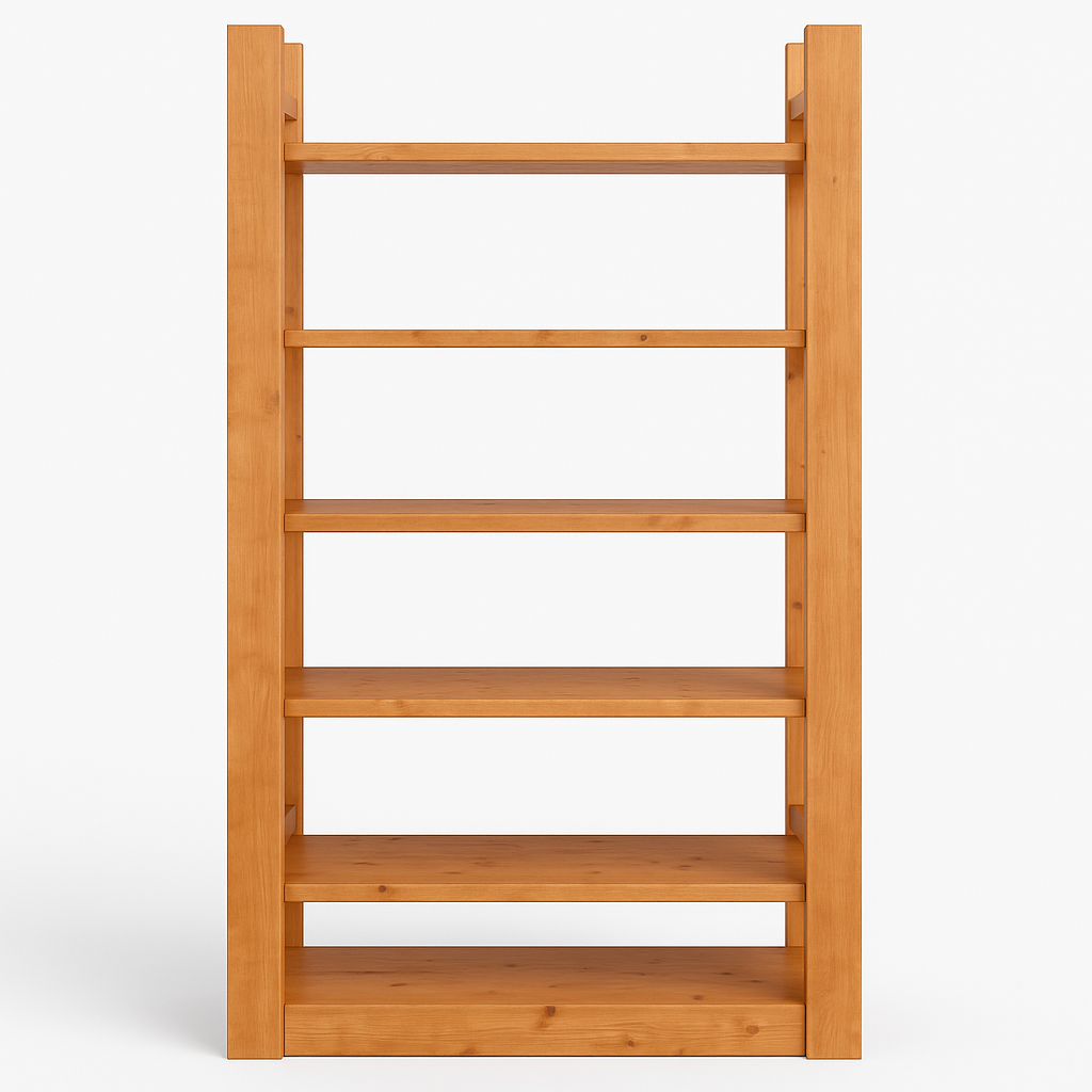 Estructura: Cuatro montantes verticales con cinco estantes fijos
