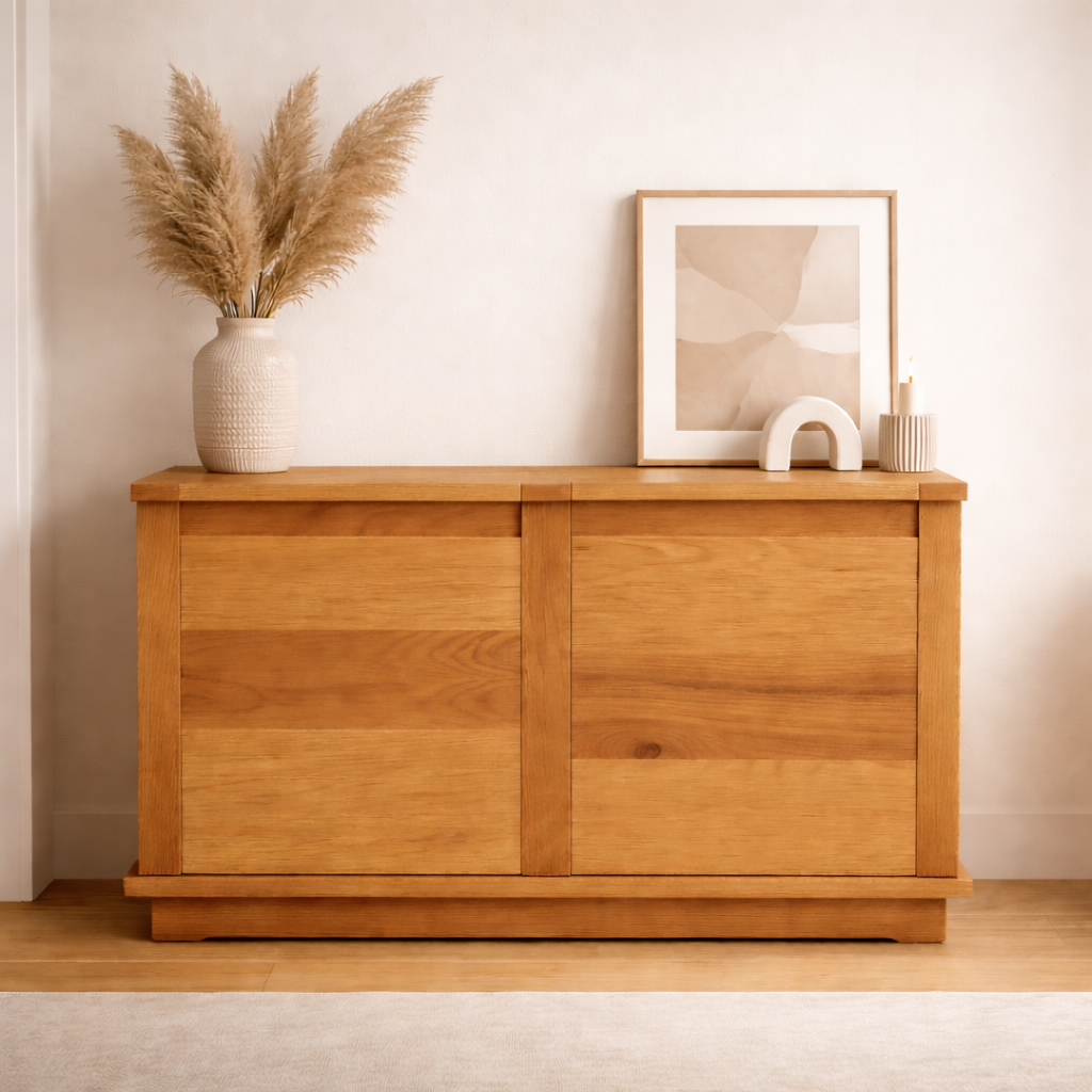 Begonia es un aparador que encarna la sobriedad sin rigidez. Su estructura compacta y de líneas puras lo convierte en una pieza versátil para múltiples estancias. La proporción contenida y la simetría frontal aportan orden visual y funcionalidad, ideal para entradas, comedores o zonas de paso.