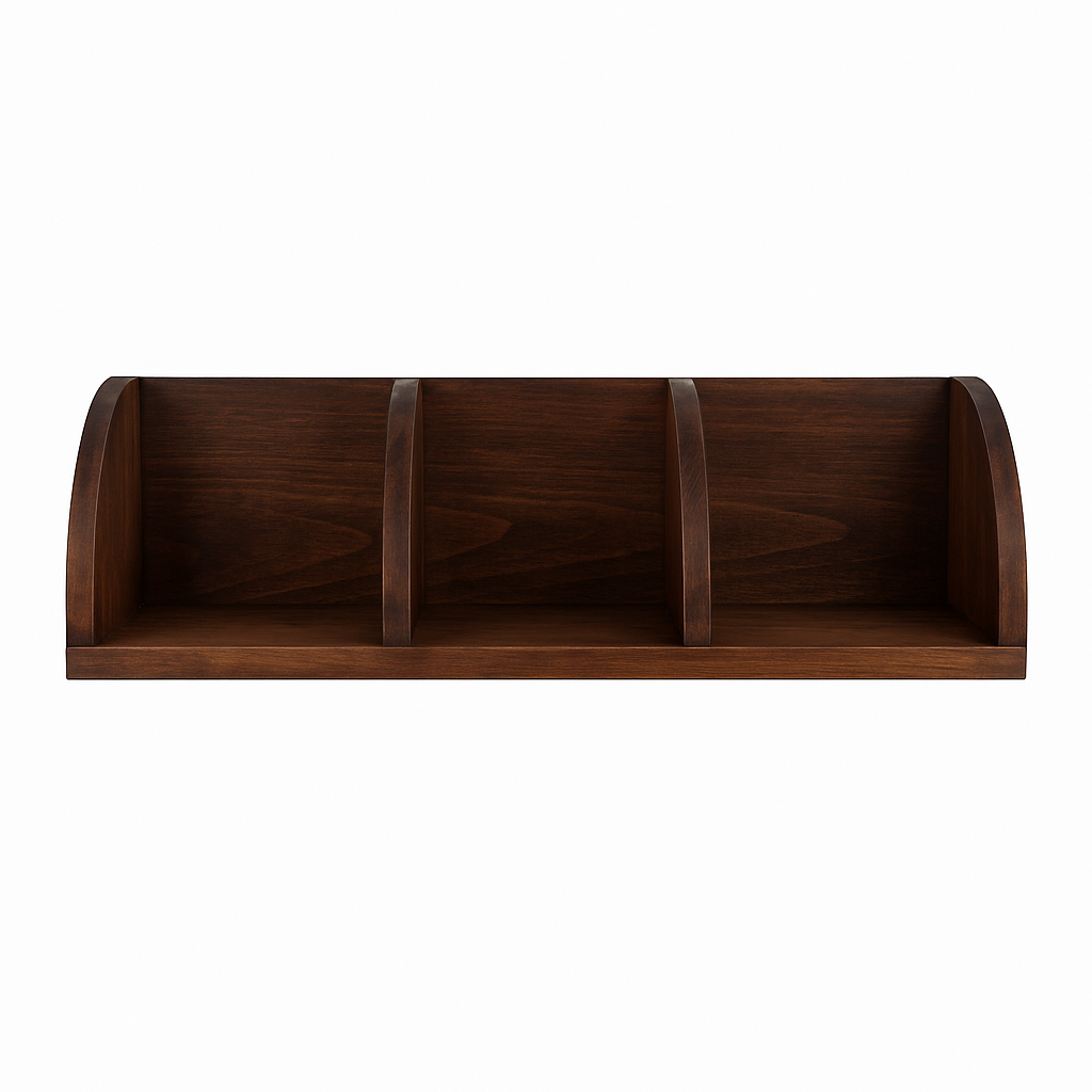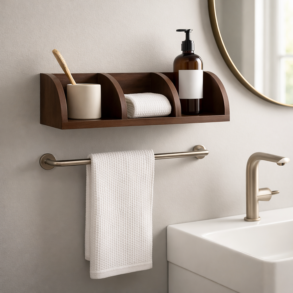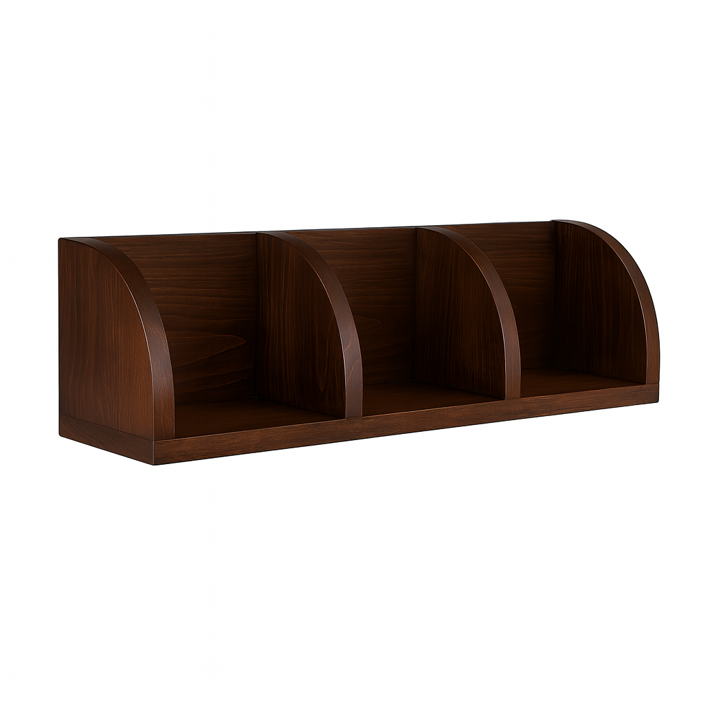 Fuji nace del encuentro entre la funcionalidad doméstica y la elegancia formal. Su diseño con divisiones curvas crea tres nichos independientes que organizan los objetos del baño con claridad visual. La pieza aporta ritmo y calidez a cualquier pared, convirtiéndose en una escultura silenciosa al servicio del uso diario.