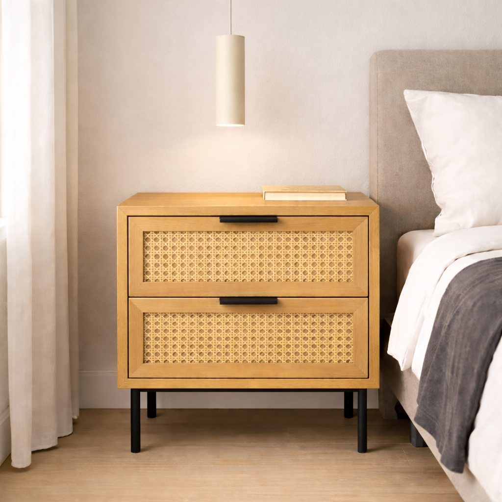 Con dos amplios cajones de almacenaje y un sobre funcional, Gardenia es ideal como mesita de noche en dormitorios cálidos y actuales. También puede funcionar como unidad auxiliar en salones o recibidores que requieran un punto de atención discreto pero con presencia.
