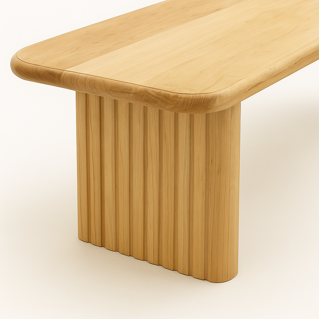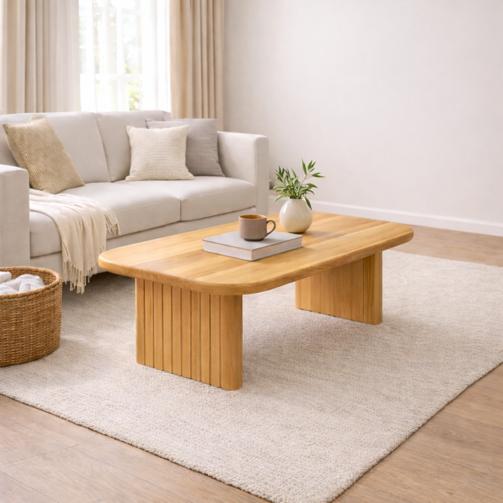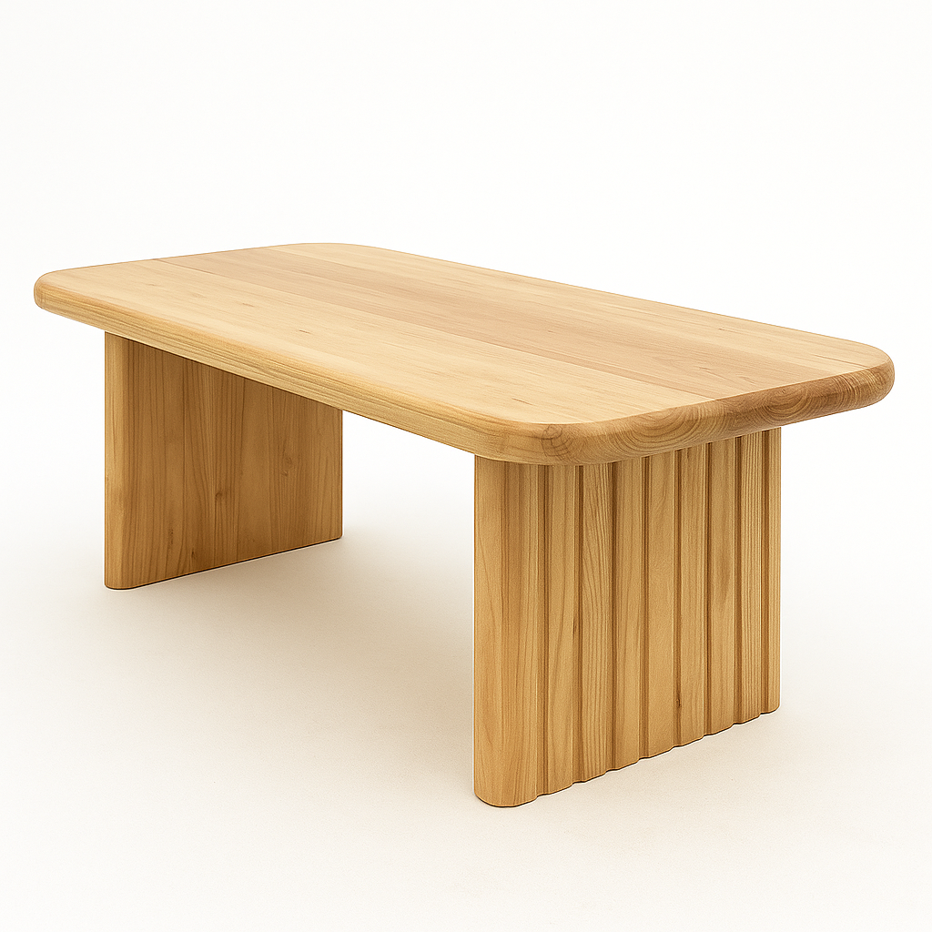 Lavanda está pensada como una mesa de centro que organiza el espacio desde la discreción formal. Sus esquinas redondeadas invitan al contacto visual y táctil, mientras que su base con lamas estriadas introduce ritmo y textura en el conjunto. Es una pieza central que no compite, sino que acompaña con carácter.