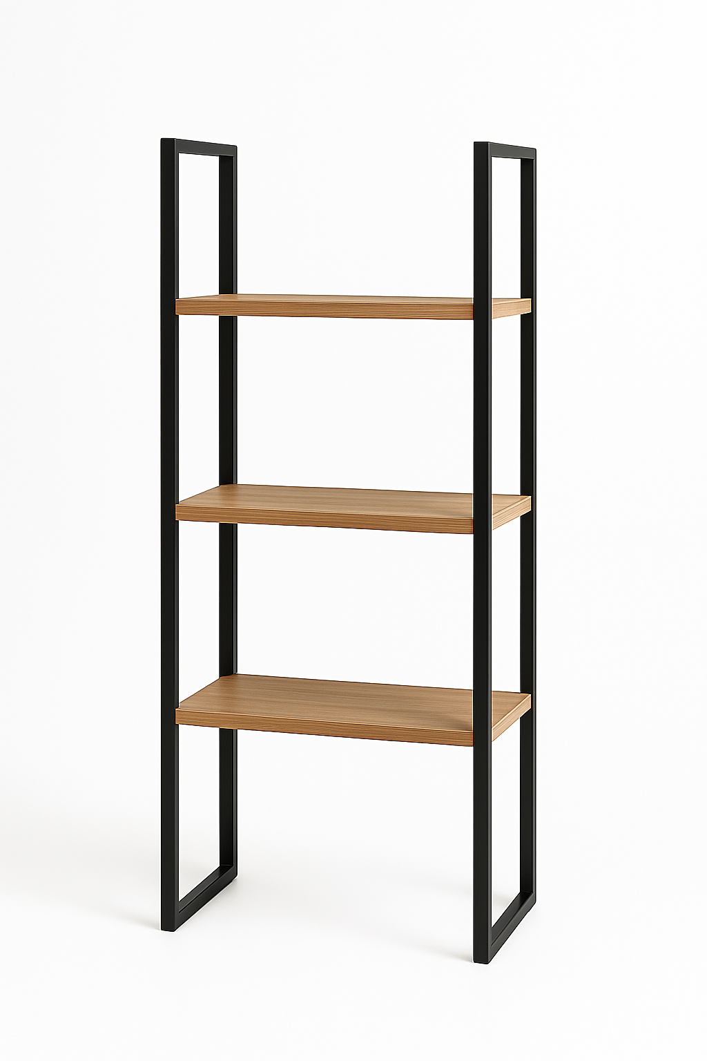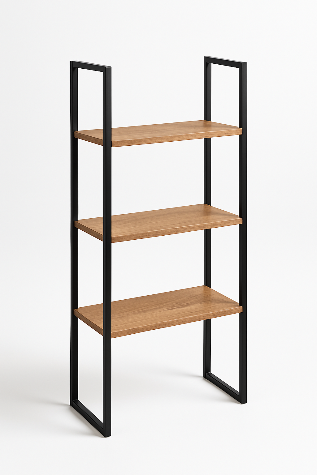 Olimpo nace como una respuesta honesta y funcional a los espacios de trabajo y de vida que exigen orden, pero también apertura visual. Su diseño suspendido, con estructura metálica negra y baldas de madera natural, aporta verticalidad sin saturar. Perfecta para zonas de estudio, despachos o estancias compartidas, esta estantería se integra sin imponerse.