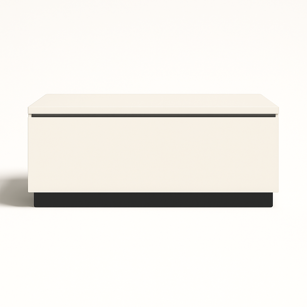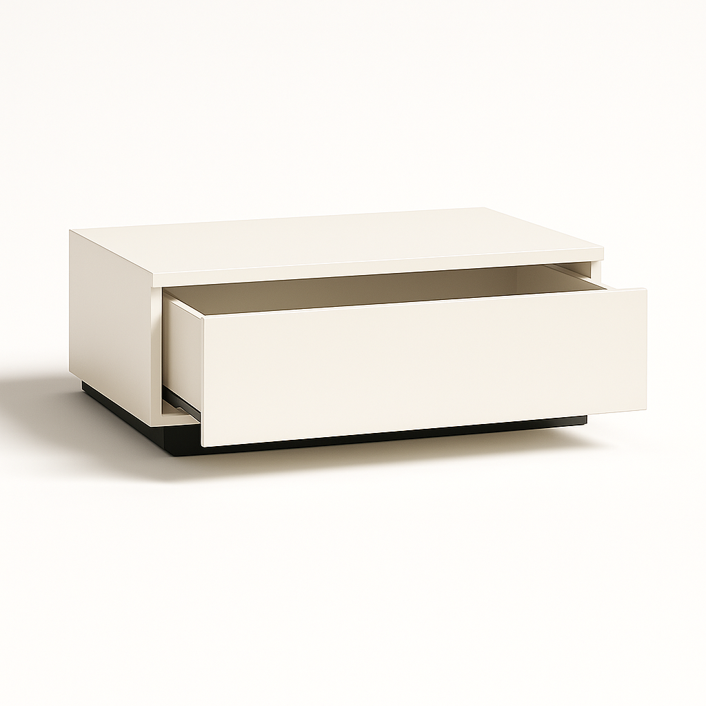 Estructura: Cuerpo blanco con zócalo negro; un cajón con apertura por uñero