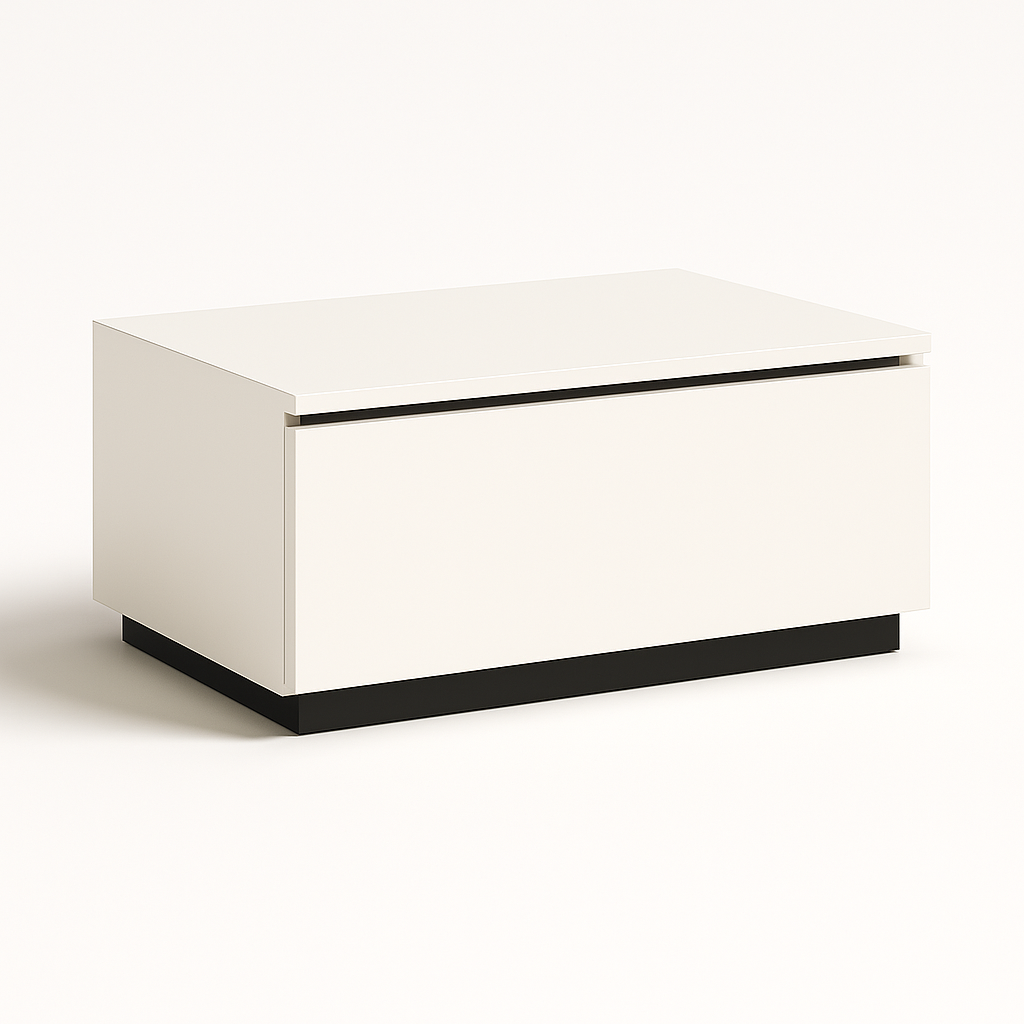 Material: MDF laminado blanco mate con base negra