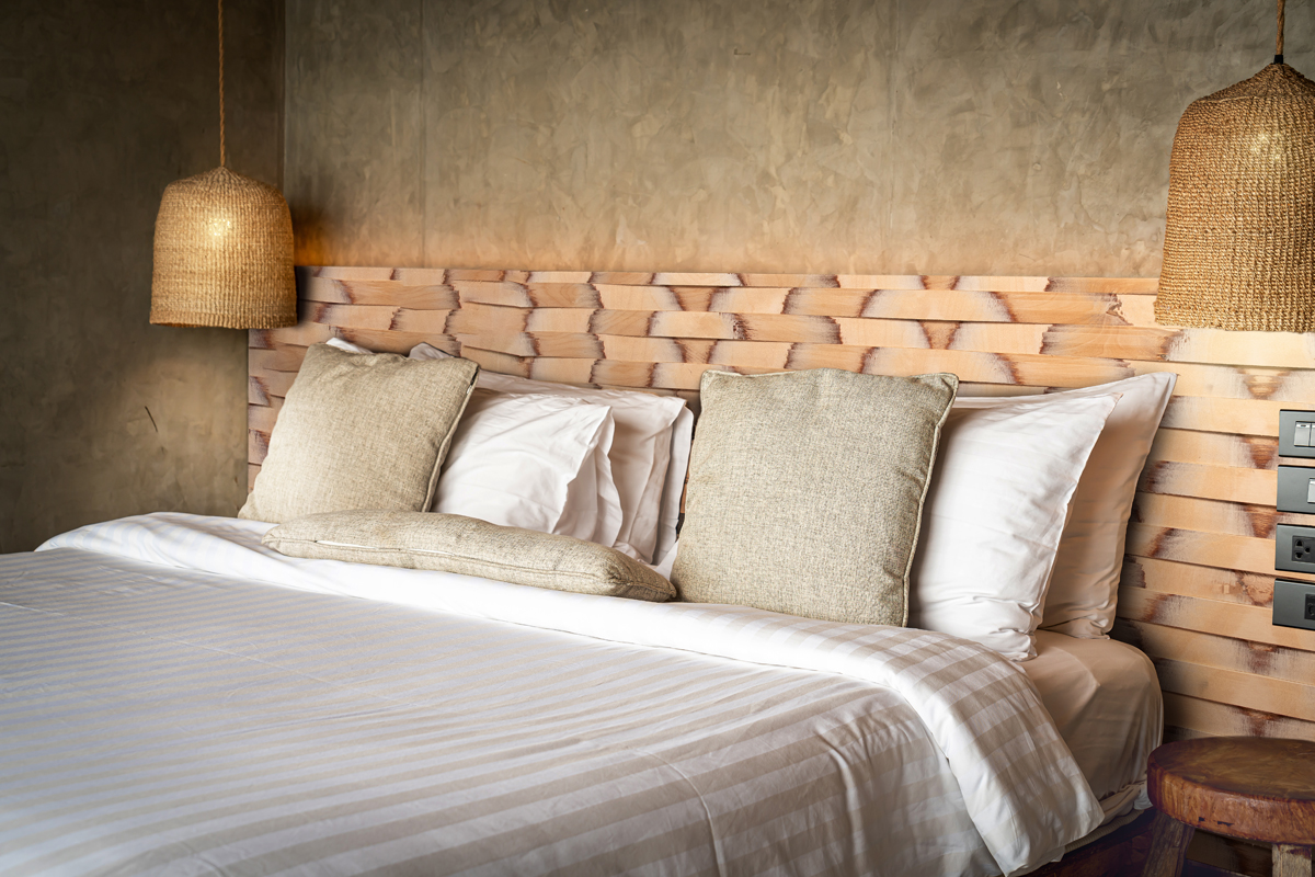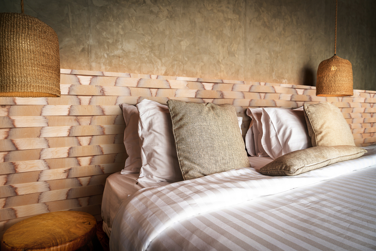 Textura brutal, eco artesanal. Un cabecero que parece tallado con las manos.